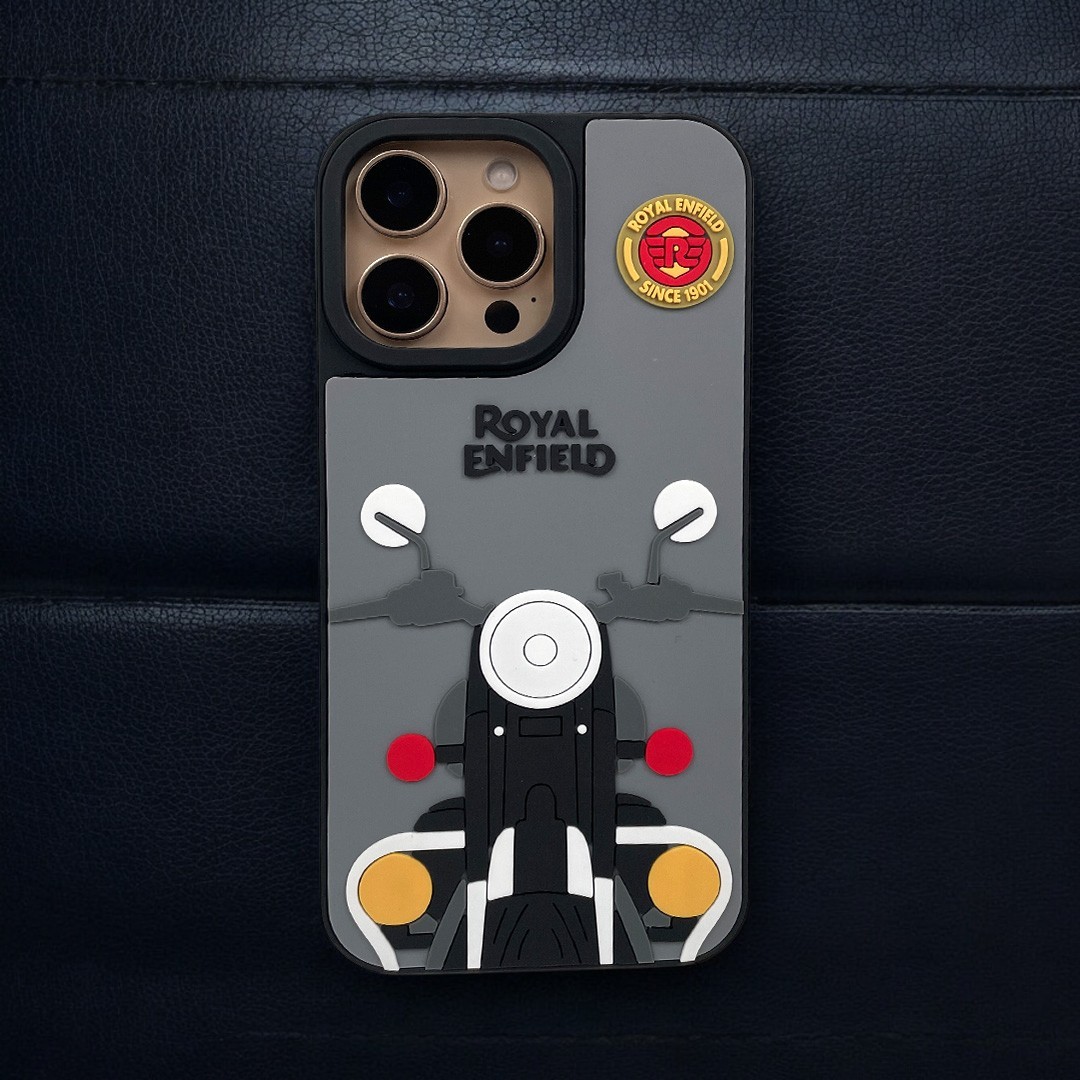 3D Embossed Design: Showcasing a stunning 3D embossed Bullet bike on the back, this case pays homage to the iconic Royal Enfield with unmatched detail and craftsmanship.