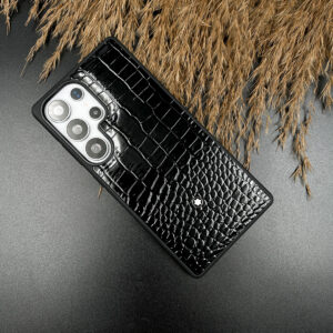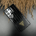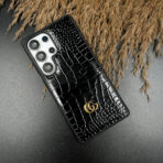 The back panel is adorned with high-quality Croco patent leather, offering a glossy, textured finish that adds a touch of elegance to your Samsung S Series.